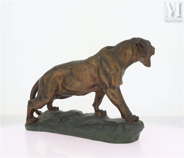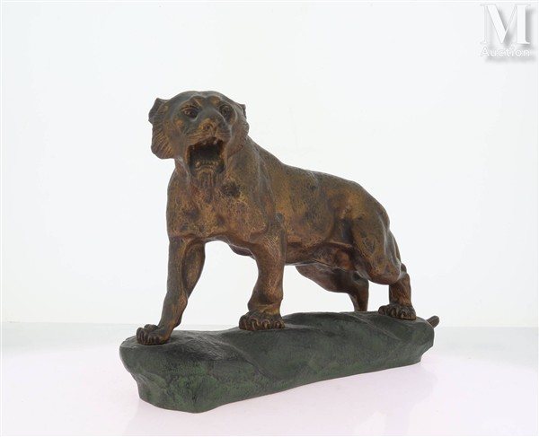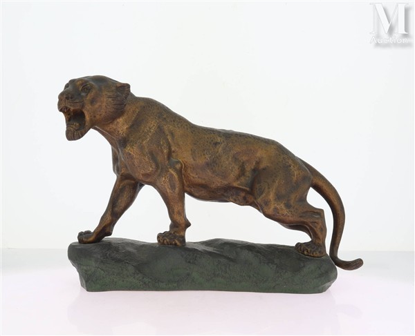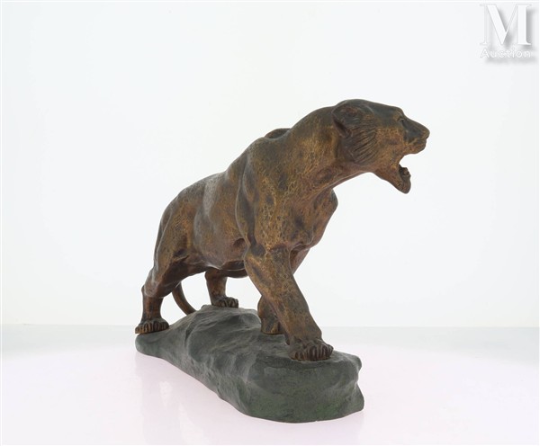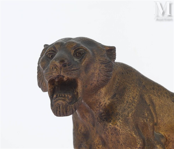 Thomas François CARTIER (1879-1936) Lionne rugissant Bronze à patine médaille...