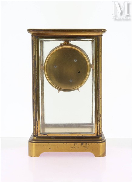 Monté dans une cage en laiton ouvrant par un ventail en façade et un ventail sur la face arrière, chaque face habillée de verre biseauté. Signée AL en creux au revers.