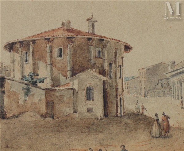 Victor Jean NICOLLE (1754-1826) Vue animée du Forum Boarium à Rome Aquarelle,...