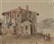 Aquarelle, plume et encre brune sur papier, représentant notamment le temple de Vesta.