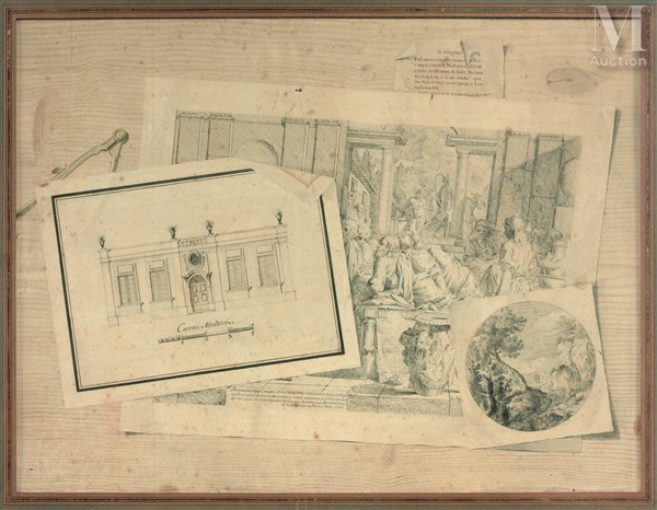 Paire de trompe l’œil avec des dessins dont un d’après Testa