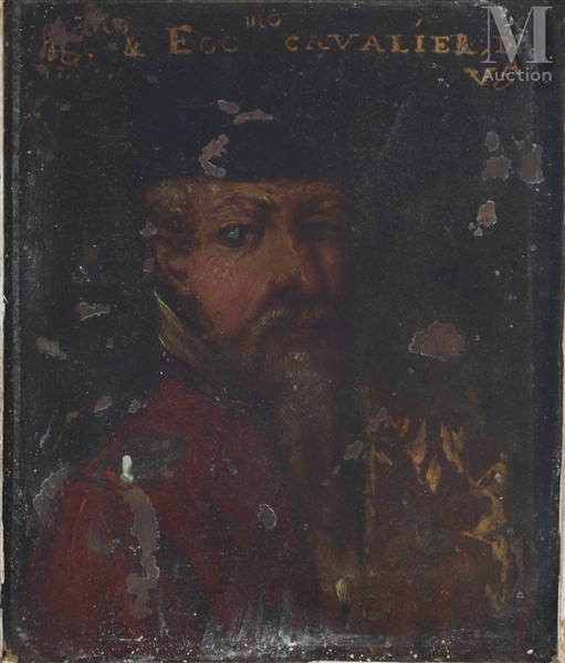 Ecole italienne du XVII ème Portrait d'homme de trois quarts Huile sur cuivre...