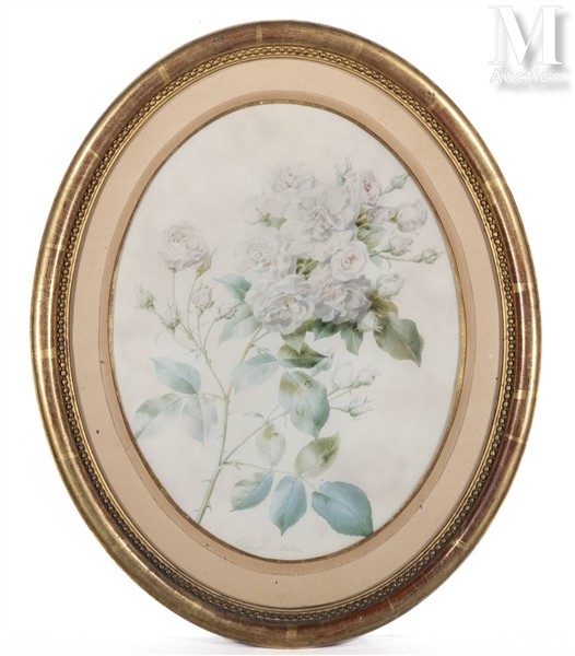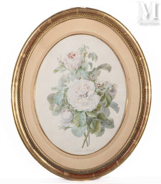 L'une signée en pied au crayon, l'autre titrée "Rose Billard" du nom de l'espèce.