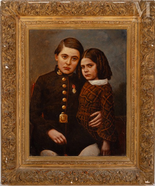 École française du début du XX ème siècle Portrait d'enfants Huile sur carton...