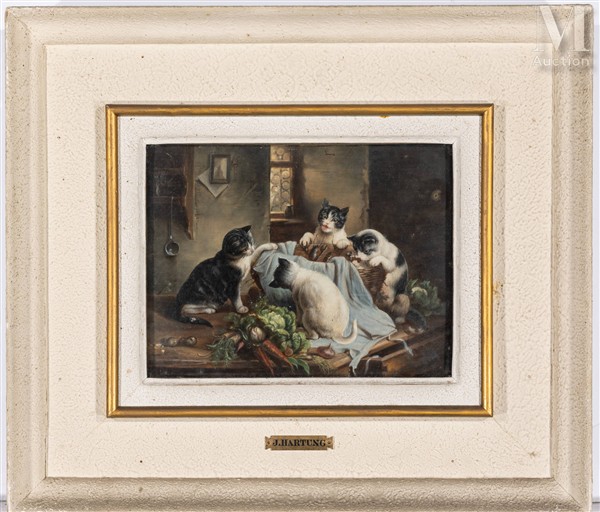 Carl REICHERT (1836-1918) dit Johann HARTUNG Chatons fouillant dans un panier...