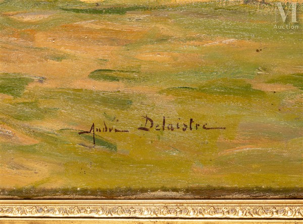 Né à Paris, André Delaistre fut l'élève de Paul Roux et Julien Dupré, avant d'exposer au Salon des artistes français et d'être nommé secrétaire de la Société des paysagistes français. Il connut deux triomphes au tournant du XX ème siècle : ses paysages furent reconnus par le jury de l'Exposition universelle de 1900, de sorte qu'une médaille de bronze lui fut décernée, et l'État le nomma parmi les très réputés peintres officiels de la Marine en 1908. A la fin de sa vie, il passa plusieurs années à Nice.
