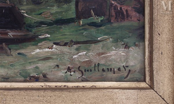 Jean-Baptiste Antoine GUILLEMET (1843-1918) Vue du Loing à Moret Huile sur...