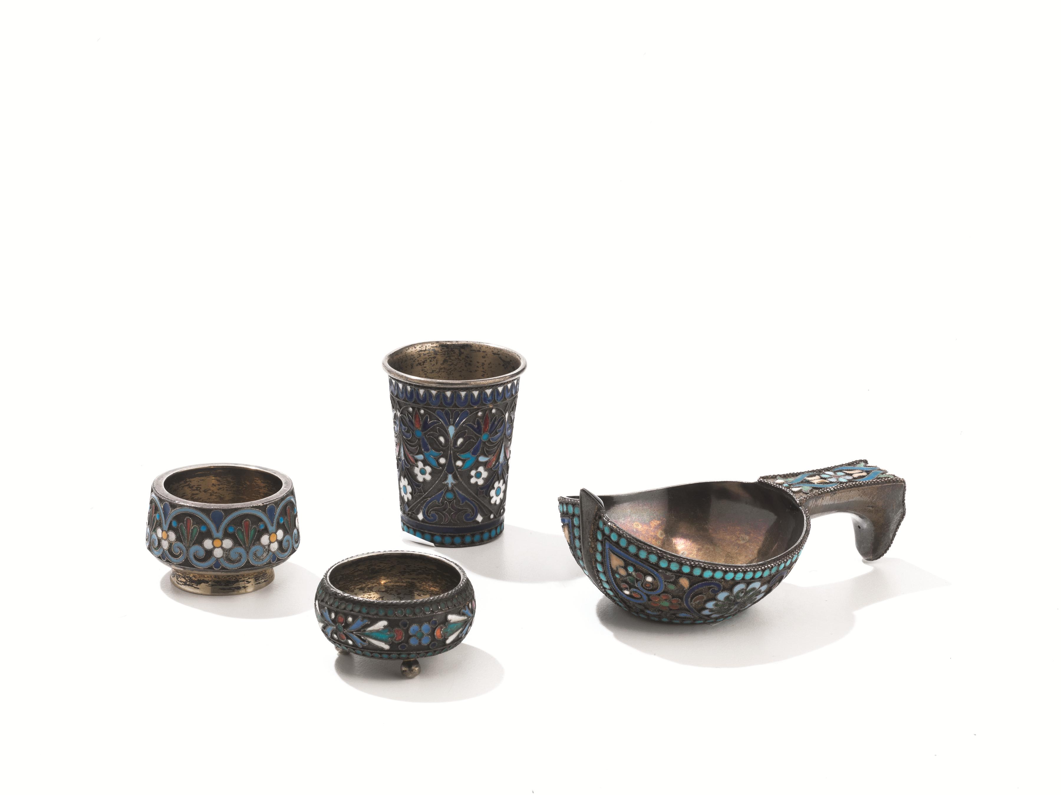 KOVSH, UN BICCHIERINO E DUE PICCOLE COPPETTE, RUSSIA, FINE SEC. XIX