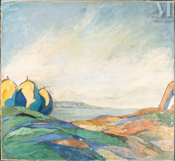 Ecole moderne du XX ème Paysage de bord de mer Huile sur toile 125 x 140 cm...