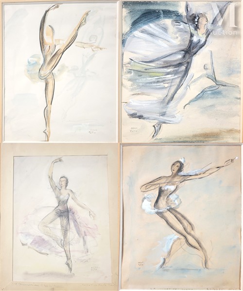 Jean TOTH (1899-1972) Les Danseuses Ensemble de quatre aquarelles, gouaches...