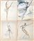 Ensemble de quatre aquarelles, gouaches et fusains sur papier