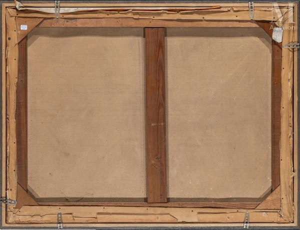 Pierre noire et rehauts d'aquarelle sur papier, marouflée sur toile.