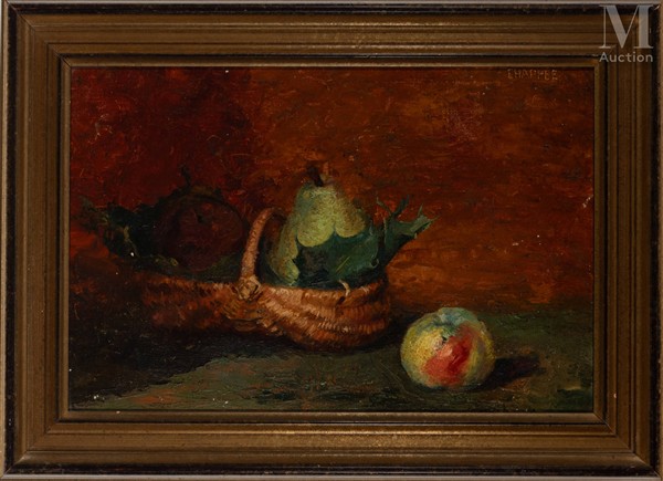 Julien CHAPPÉE (1862-1957) Nature morte au panier Huile sur toile Signée en...