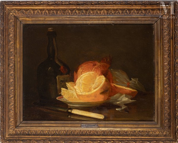 Ernest Eugène LEFEBVRE (1850-1889) Nature morte à l'orange coupée et à la...