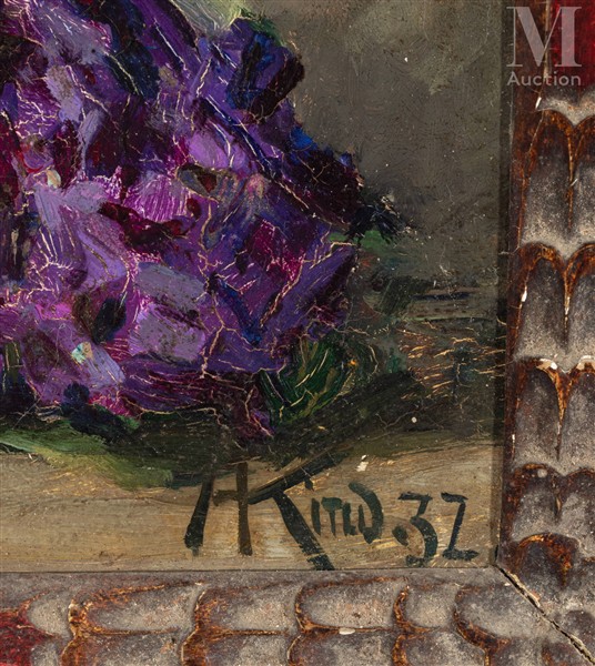 Auguste KIND (1863-?) Nature morte au pichet vert, 1932 Huile sur panneau...