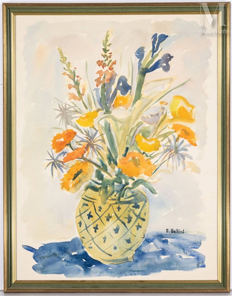 Lot 296 | Emmanuel BELLINI (1904-1989) Nature morte au bouquet et vase bleu-vert...