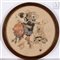 Aquarelle et rehauts de gouache blanche, plume et encre sur papier circulaire.