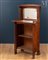 En bois naturel mouluré, à deux étagères et un plateau supérieur terminé d'un miroir, les montants ajourés.