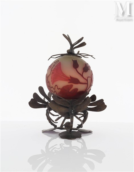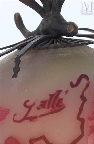 GALLE - Nancy Libellules et Feuilles de nénuphar Rare veilleuse à monture et...