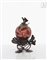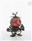 Il coperchio del bulbo in vetro multistrato presenta una decorazione di fiori, foglie e viticci di convolvolo rosso-rosa su fondo giallo.