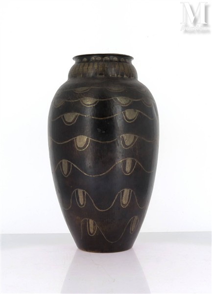 Jean DUNAND (1877-1942) Vase ovoïde à ressaut, c. 1920 Dinanderie de cuivre...
