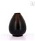 Vase ovoïde en dinanderie de bronze à motifs géométriques échelonnés s'élevant de la base à la panse sur fond noir nuancé. Le col cerclé de même.