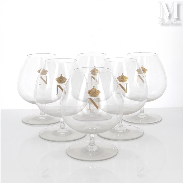 BACCARAT Ensemble de 6 verres à cognac Cristal blanc et décor à l'or au N...