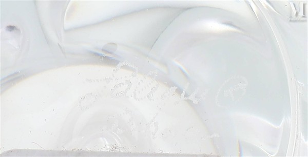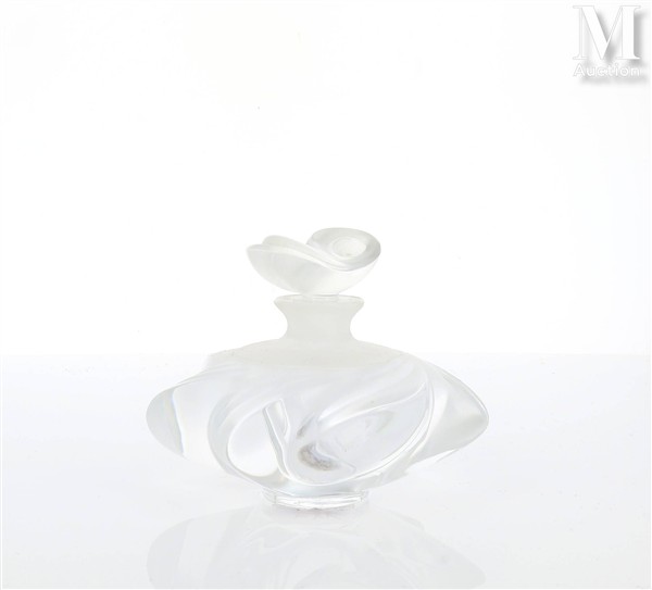 LALIQUE France Flacon en verre pressé moulé et amati. Signé sous la pièce. H....