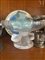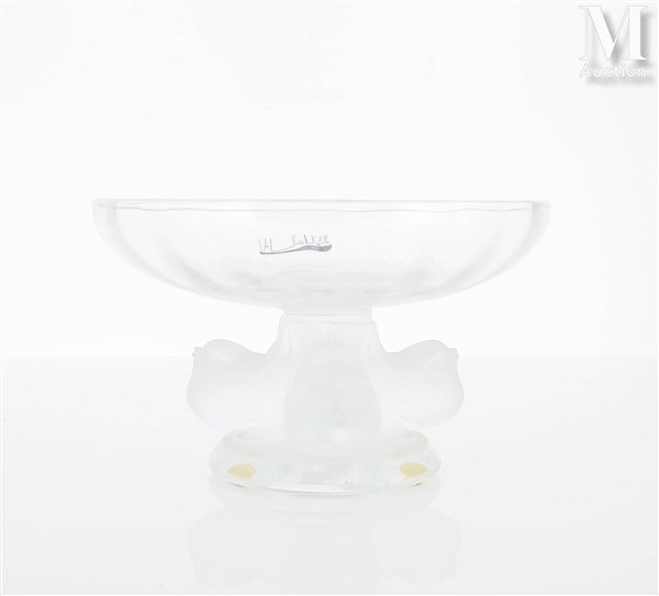 Ciotola tascabile in cristallo goffrato poggiante su piedistallo amati decorato con uccelli.