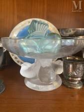 Coupe vide-poches en cristal godronné reposant sur un piédouche amati à décor d'oiseaux.