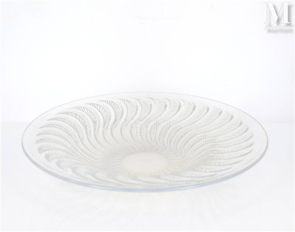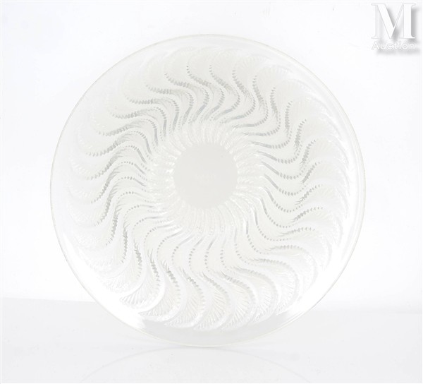 LALIQUE France Assiette circulaire en verre opalescent à décor de stries...