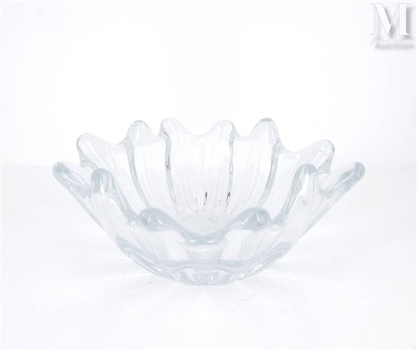 DAUM France Bol côtelé en cristal pressé moulé. Signé "Daum # France" H. : 9...