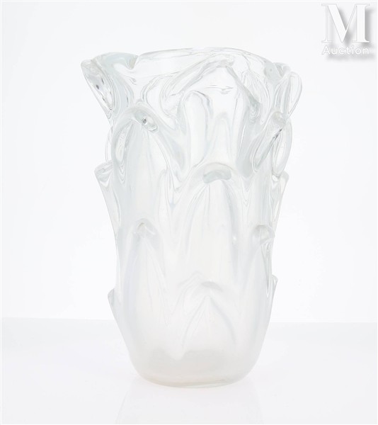 Cristal J.B France Vase en cristal moulé à décor de vaguelettes en reliefs....