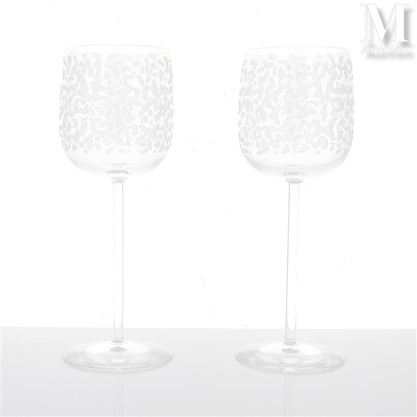 SALVIATI Paire de verres à vin en verre de Murano à décor amati de formes...