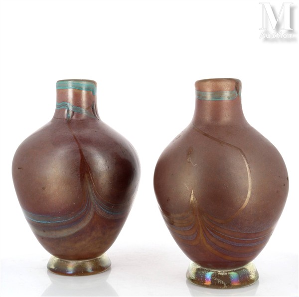 Jean-Luc GAMBIER (1948) à Èze Paire de vases ovoïdes, 1989 Verre soufflé brun...