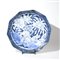 Arita porcelain blue and white dish with octagonal rim, decorated with Buddhist lion and blossoming flowers.