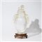 Carved natural crystall in shape of small anphor and cover sourmonted by a Buddhist lion and with two lion head handles. On wooden stand.