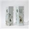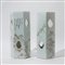 A pair of hexagonal white porcelain hat stands, decorated with blossoming trees, birds and mountain landscapes.