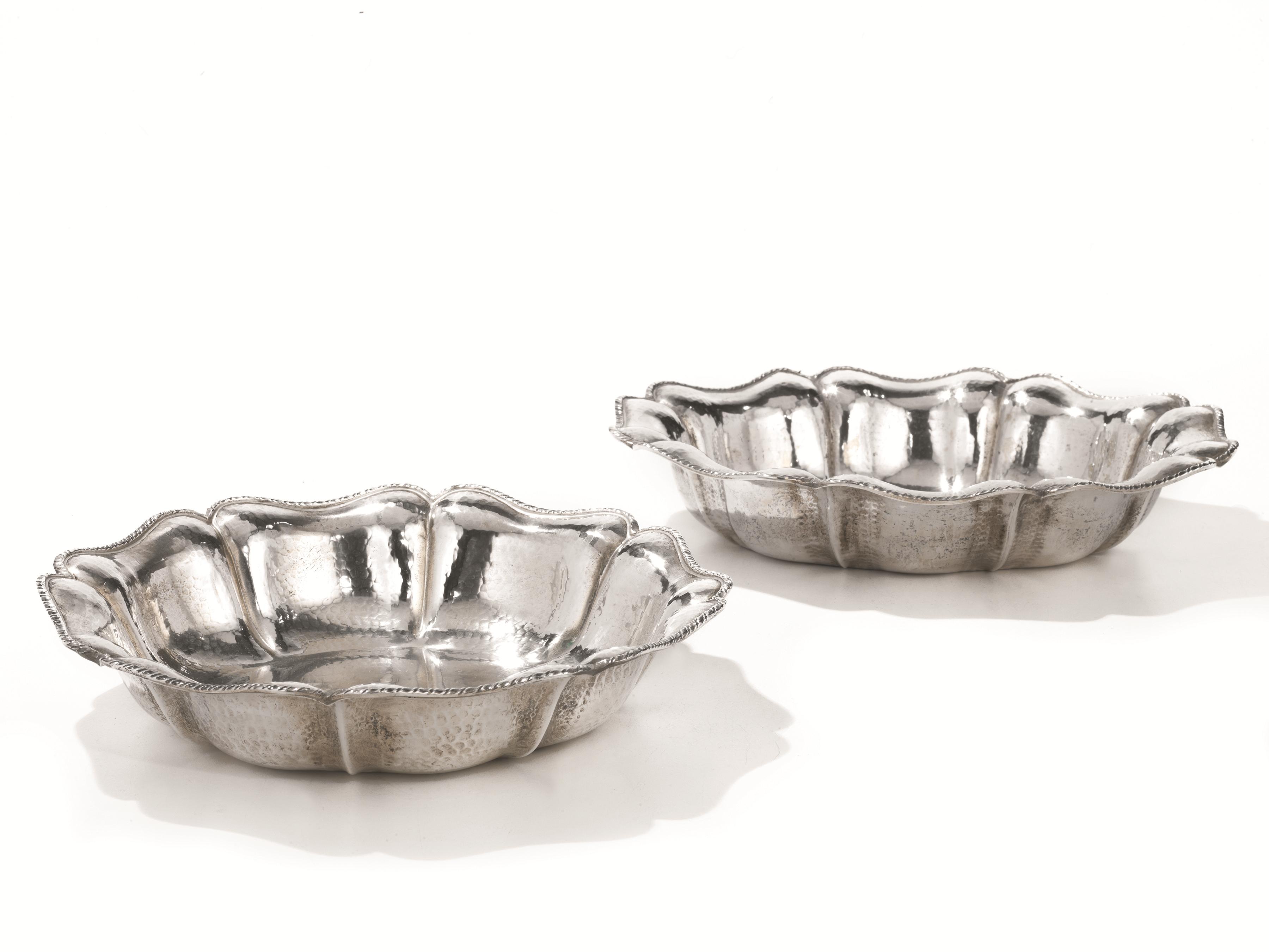 DUE VASCHETTE CENTROTAVOLA, SEC. XX in argento rispettivamente di forma...