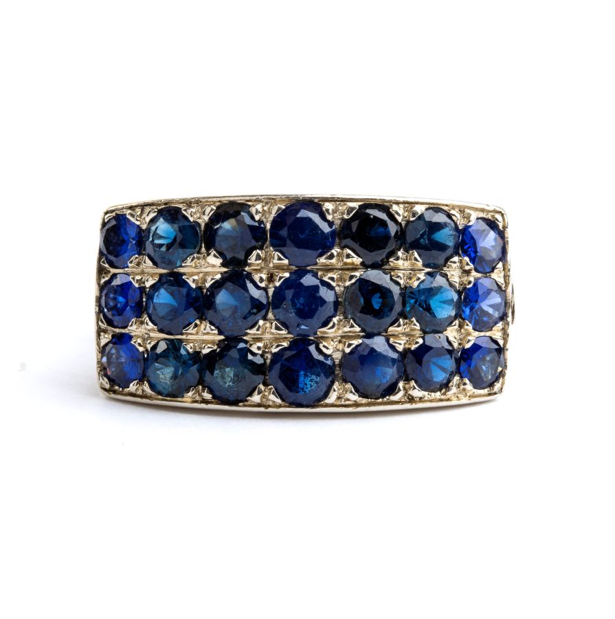 Anello a fascia in oro e zaffiri Anni '40