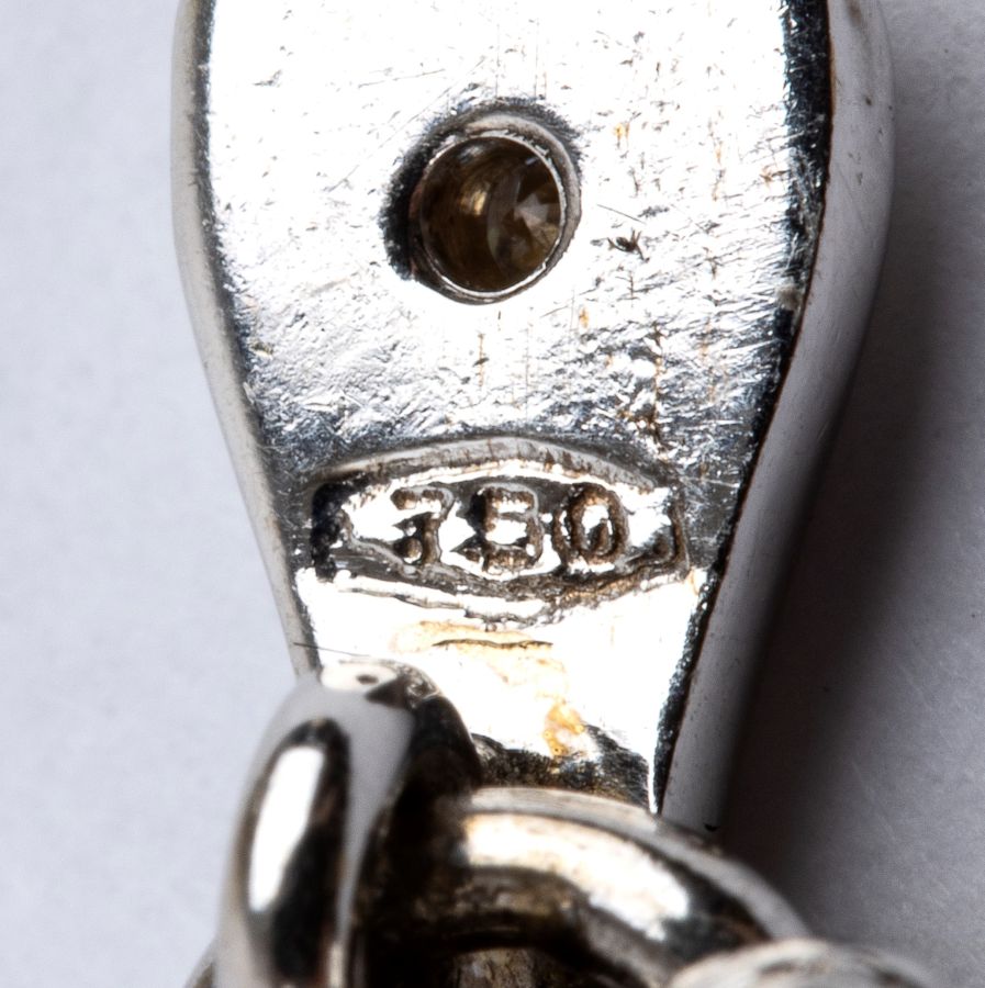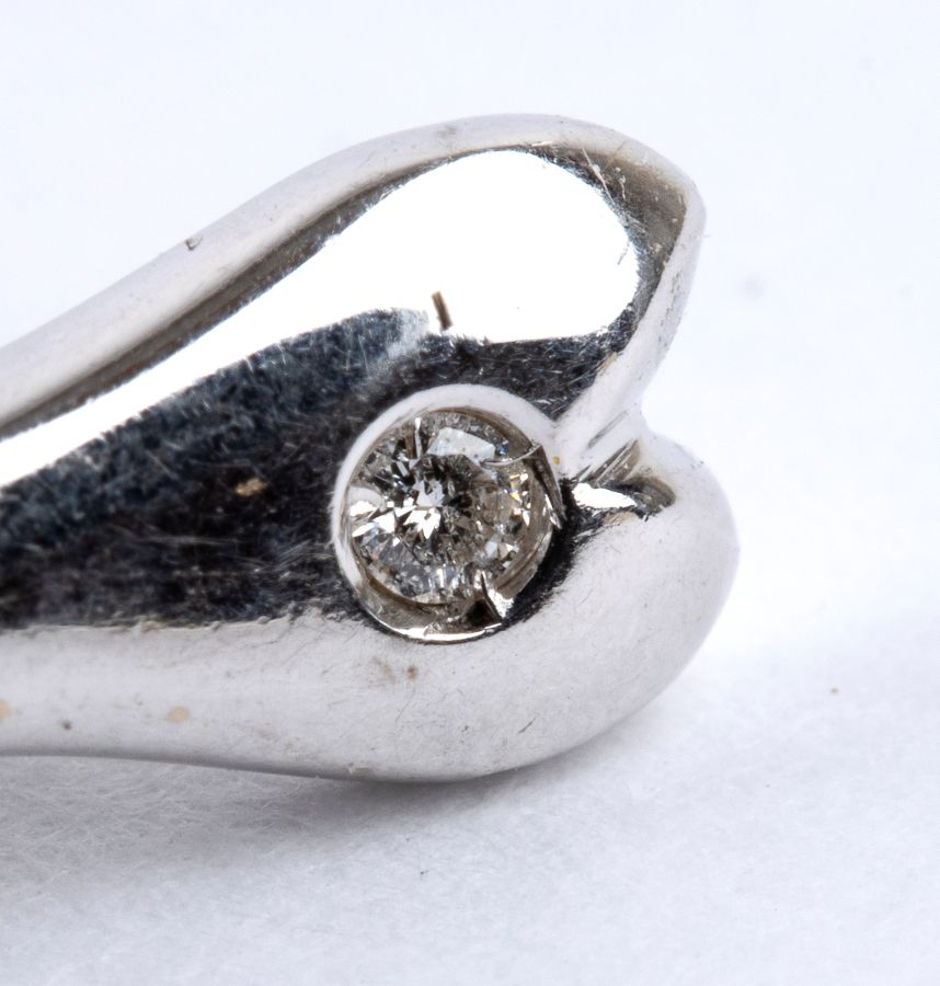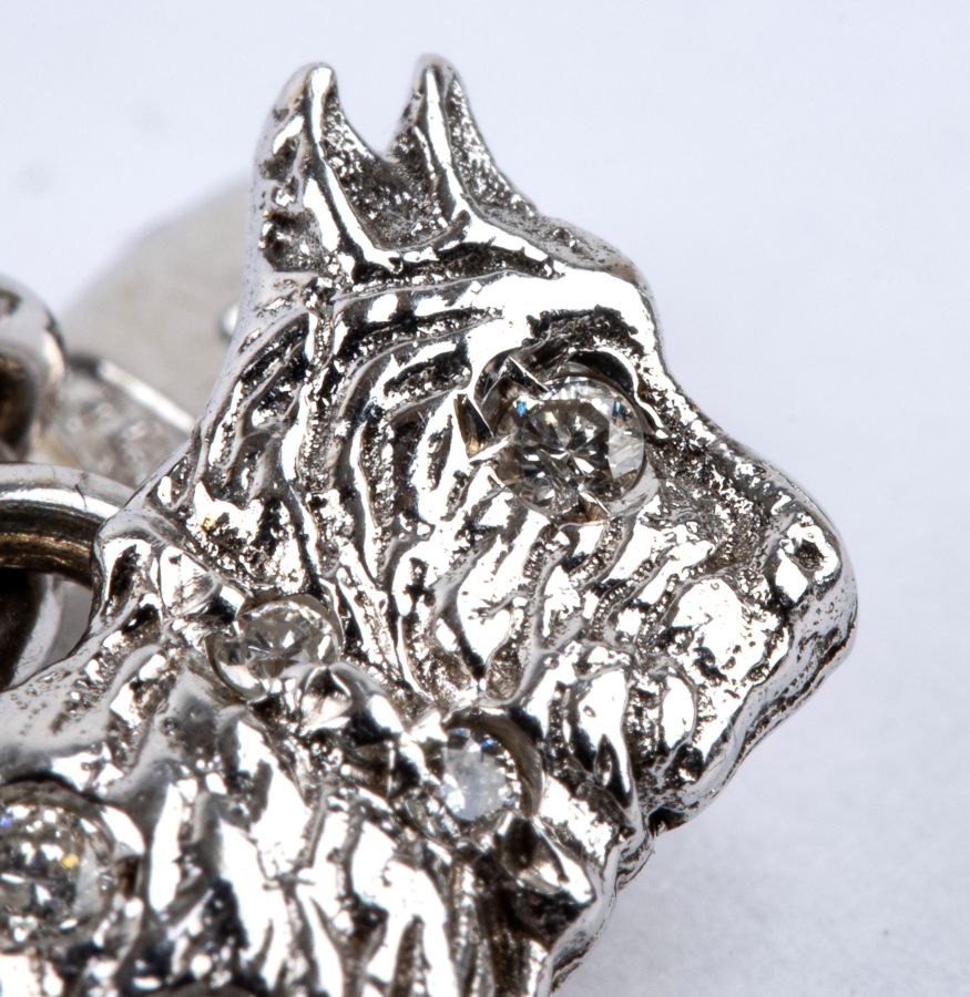 in oro bianco 18k, a forma di cane, incastonati con diamanti.