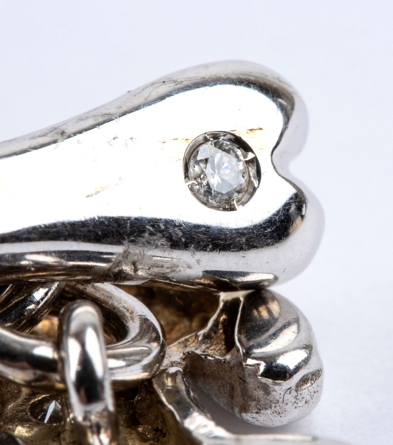 Gemelli in oro con diamanti in oro bianco 18k, a forma di cane, incastonati...