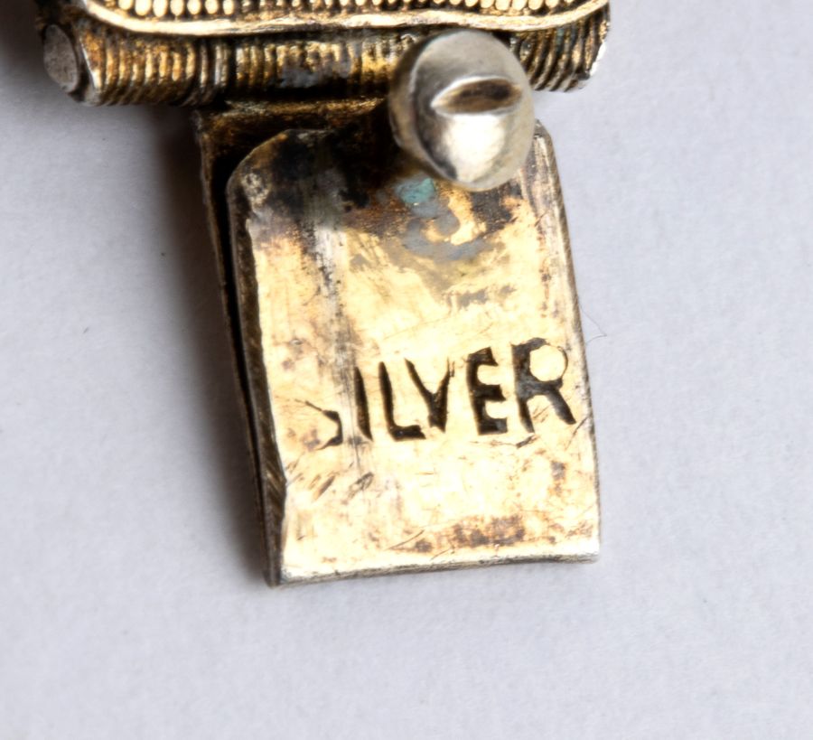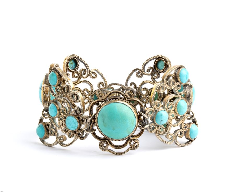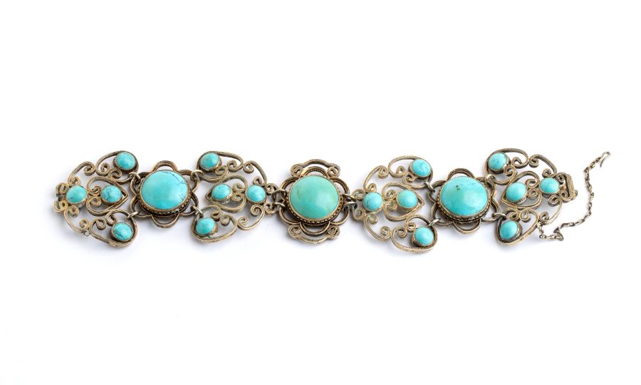 Bracciale in argento con turchesi maglie con motivo a volute, incastonato con...