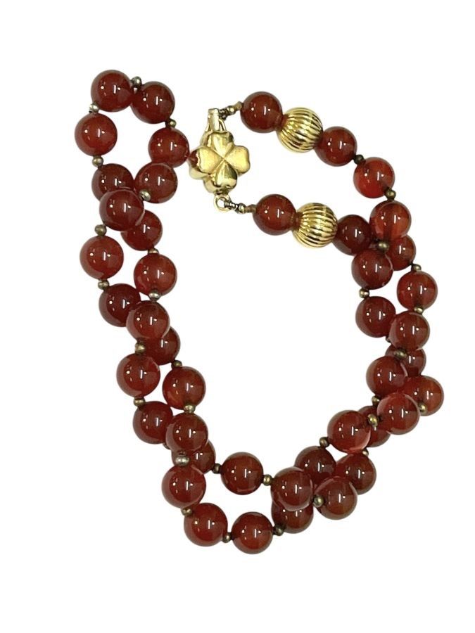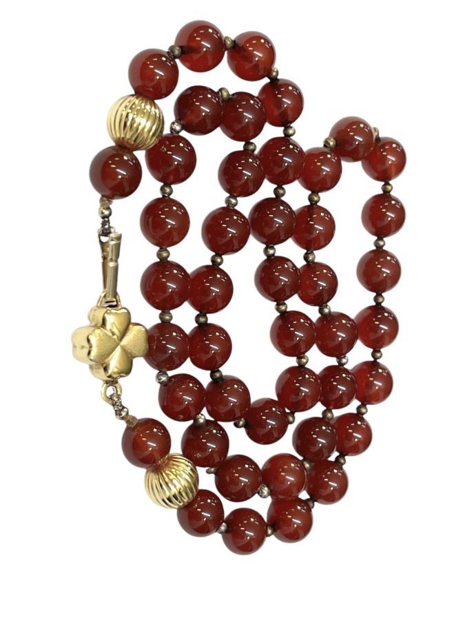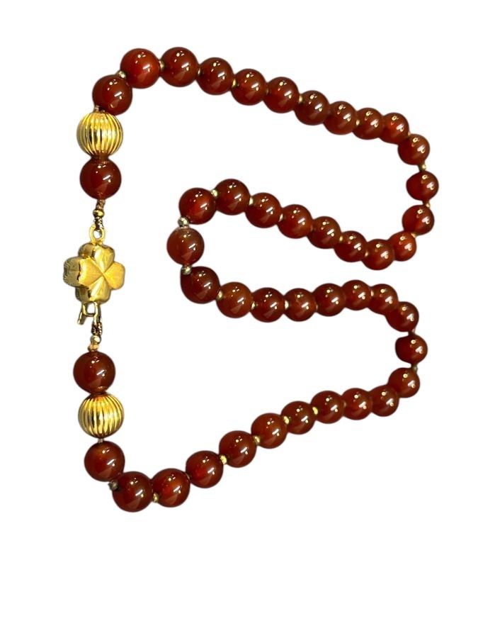 ad un filo di sfere di corniola, fermezza in oro giallo 18k.