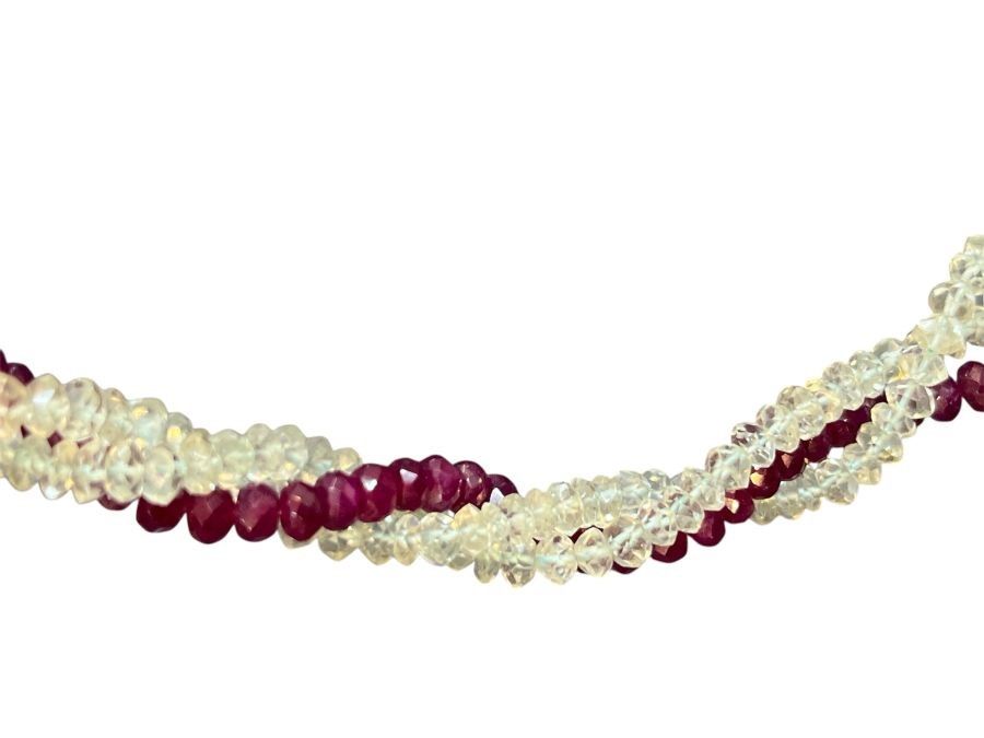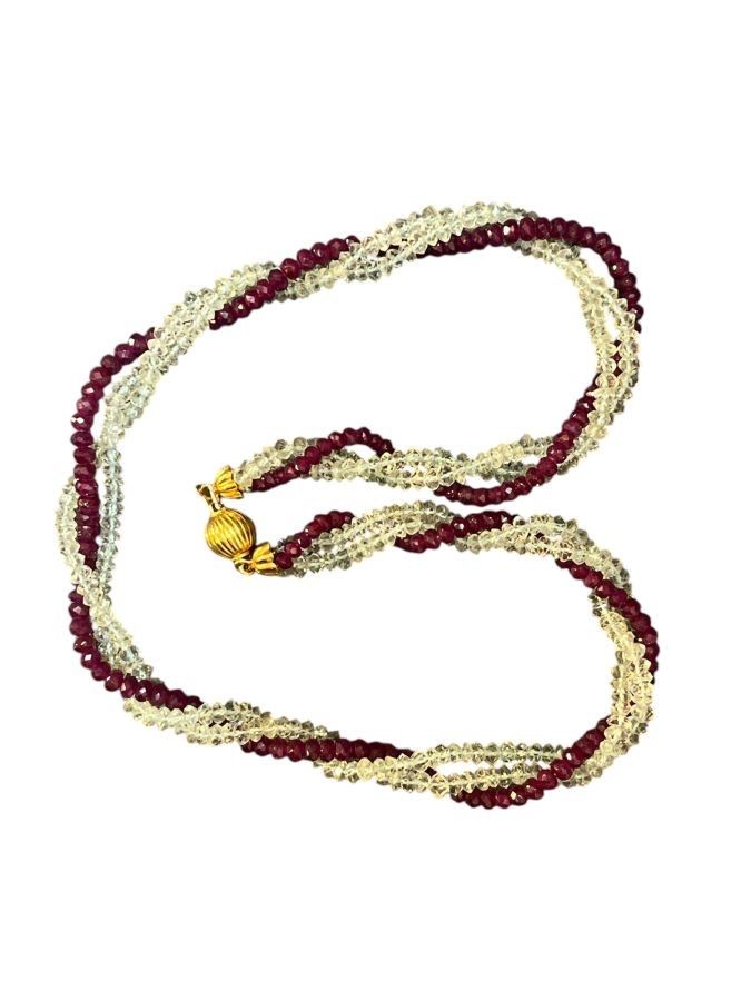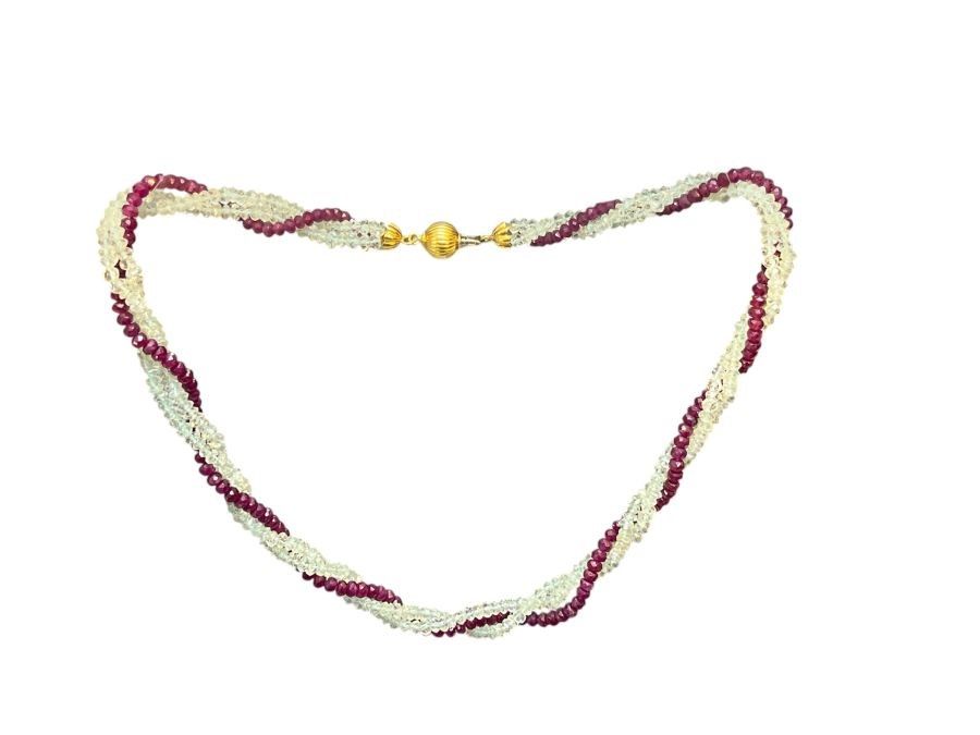 Girocollo a torsade con radici di rubino e quarzi composto da due fili di...
