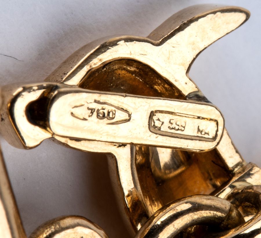 Gemelli in oro e diamanti in oro giallo 18k, a forma di cani bassotti, occhi...
