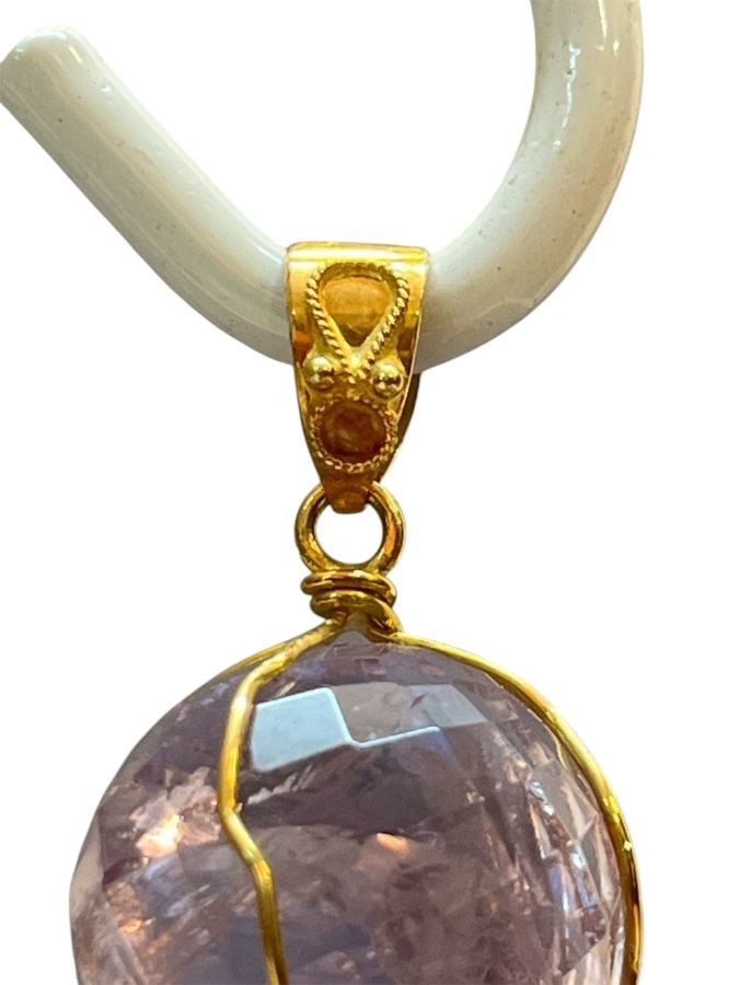 Pendente con ametiste e cristallo di Rocca montatura in oro giallo 18k,...