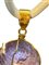 montatura in oro giallo 18k, decorata con due ametiste sfaccettate, una di forma sferica ed una a goccia separate da un cristallo di occa.