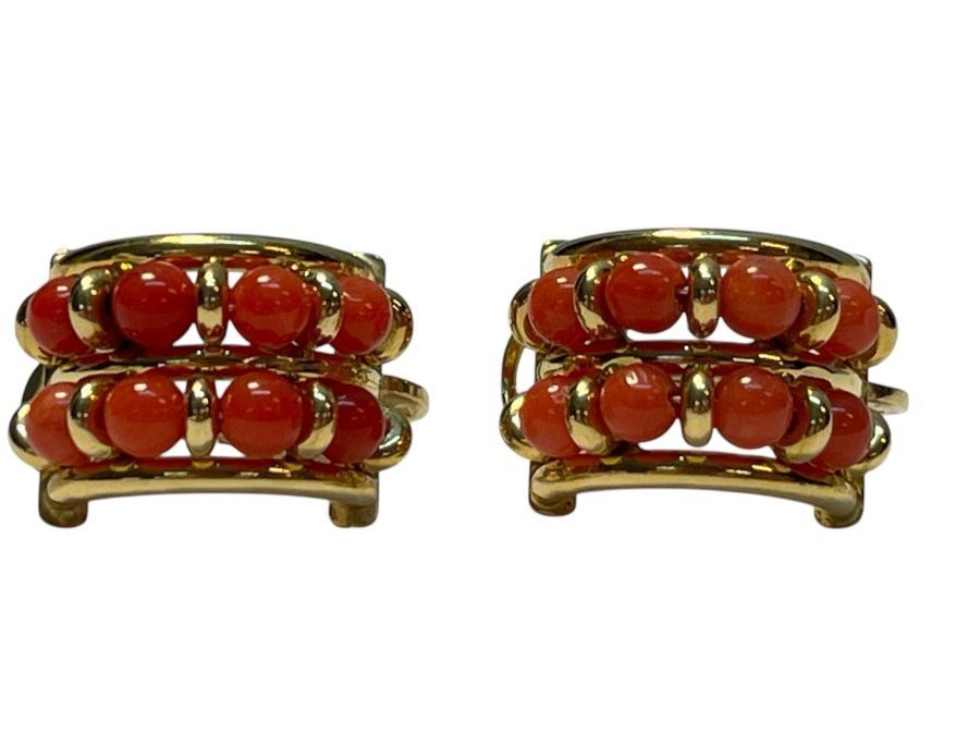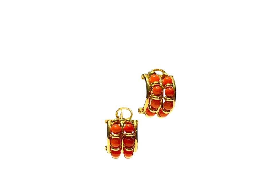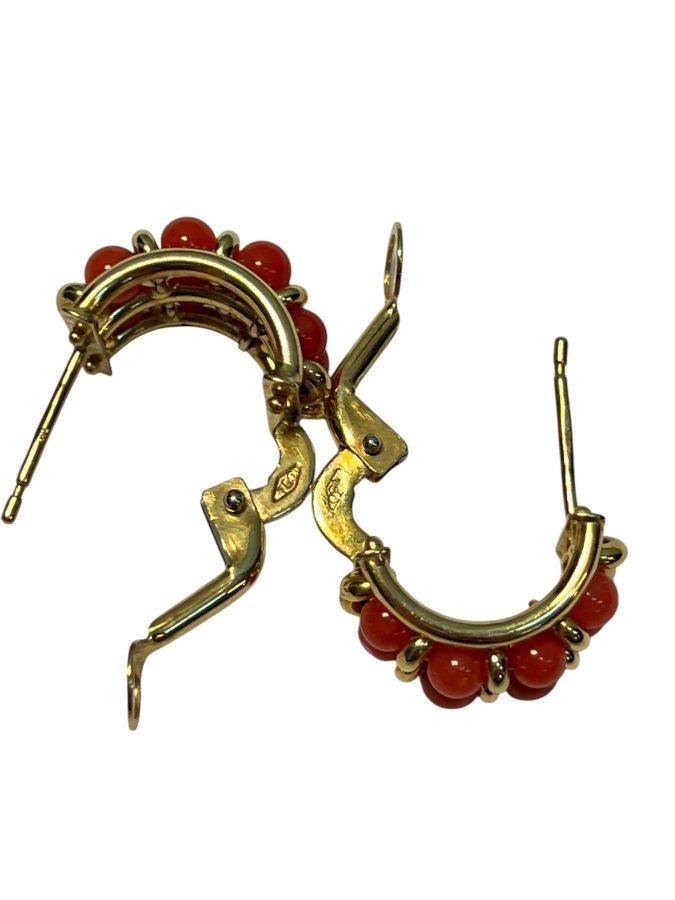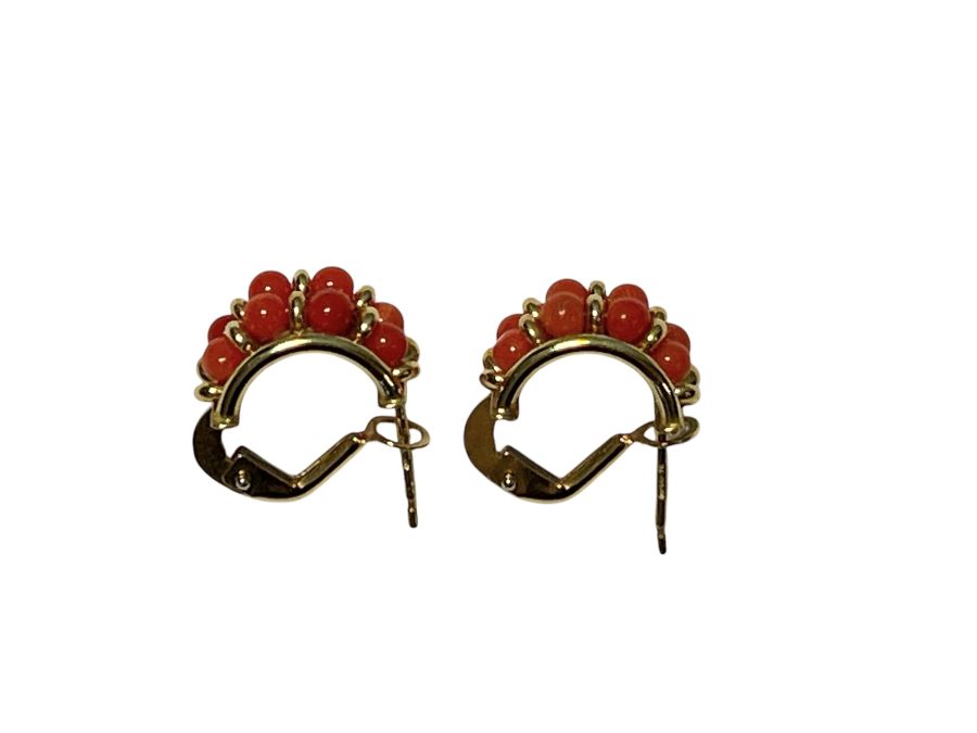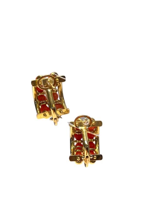 in oro giallo 18k, decorati con piccole sfere di corallo Mediterraneo (Corallum Rubrum).