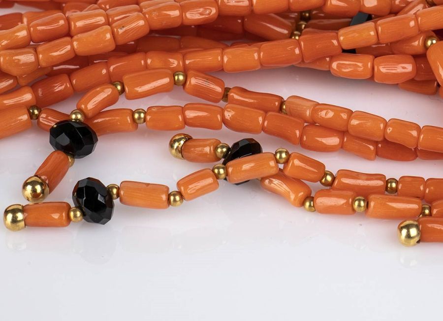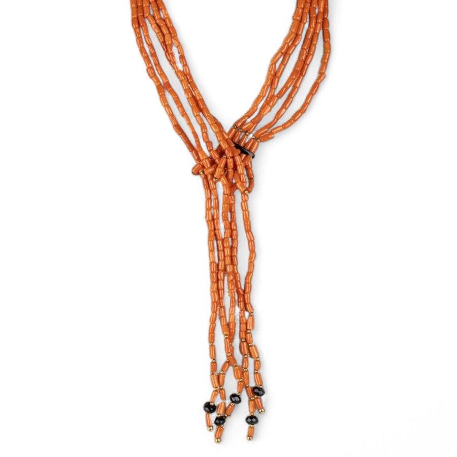 Girocollo a sciarpa in corallo Mediterraneo ed onice cilindretti di corallo...